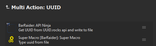 There is an amazing Stream Deck plugin made by BarRaider called API Ninja which lets you make web requests. In this case, we’ll have it request the uuid.rocks JSON API and write the UUID to a .txt file.