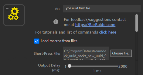 However, going to a website (or even using curl) to get a UUID just isn’t fast enough. So with my recently acquired Stream Deck, I set off to build a button that would do it for me!